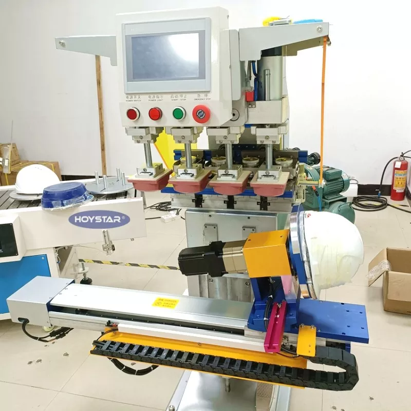 Ako profesionálny výrobca v Číne by sme vám radi poskytli vysokoúčinný 4 farebný tampónový tlačiarenský stroj HOYSTAR pre prilbu, ktorý je špeciálne navrhnutý na tlač na bezpečnostnú prilbu. Náš stroj je plne automatický, vybavený automatickým podávaním, automatickým plazmovým spracovaním, automatickou tlačou, automatickým sušením a automatickým vykladaním. Stroj je veľmi ľahko ovládateľný a má stabilný tlačový výkon.