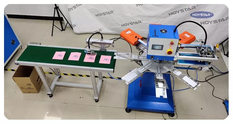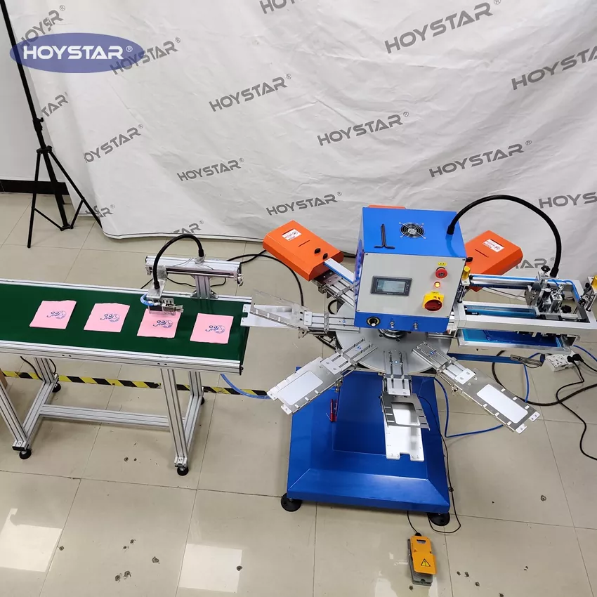 Ako profesionálny výrobca a dodávateľ automatický jednofarebný sieťotlačový stroj na obrúsky HOYSTAR. je špeciálne navrhnutý pre plne automatickú tlač na obrúsky. Jeho zjednodušený proces tlače sa rozvíja takto: manuálne vloženie obrúskov do stroja – automatická tlač prvej farby – automatické sušenie – automatické vykladanie – a automatický zber produktov.