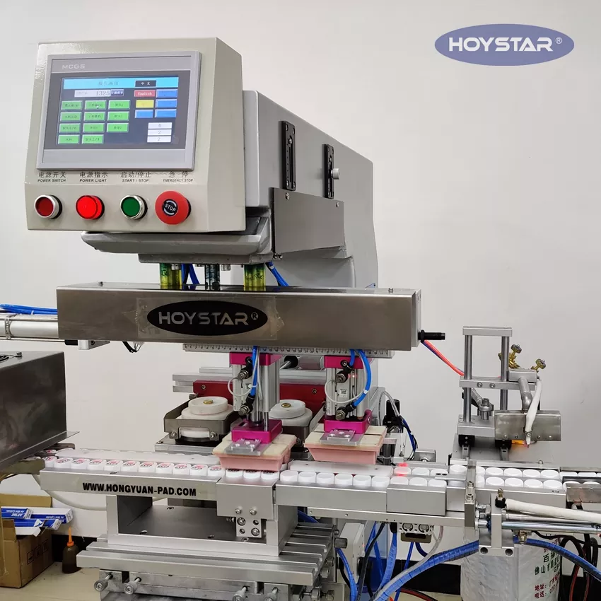 HOYSTAR je slávny výrobca a dodávateľ automatických dvojfarebných uzáverov fliaš v Číne. Ak chcete nakupovať kvalitné a najnovšie produkty, ihneď nás kontaktujte. Tento automatický dvojfarebný stroj na tamponovú tlač uzáverov fliaš HOYSTAR je vysoko výkonné a praktické tlačové zariadenie, špeciálne navrhnuté na tlač uzáverov fliaš. Stroj má plne automatický dizajn, ktorý je vybavený automatickým podávaním, automatickým spracovaním plameňom, automatickou tlačou, automatickým sušením a automatickým vykladaním na realizáciu stabilnej výroby a šetrenie pracovnej sily. Je vhodný pre potreby tlače uzáverov fliaš v odvetviach, ako sú nápoje, kozmetika, denné chemikálie a ďalšie. Dokáže splniť špecializované požiadavky zákazníkov na tlač na produkty uzáverov fliaš.