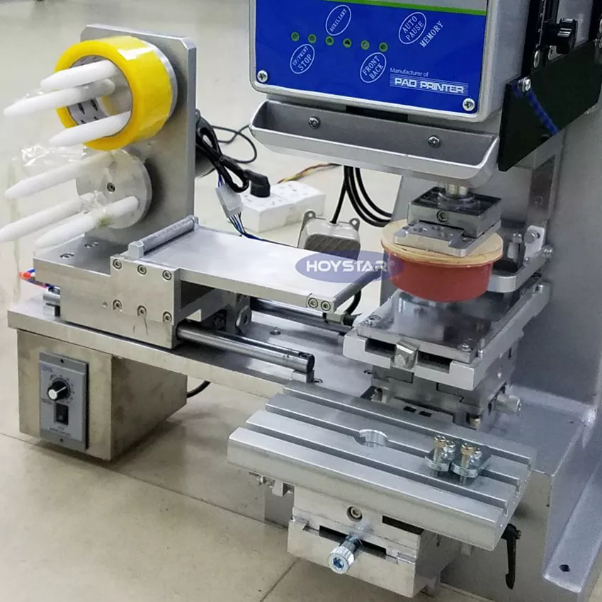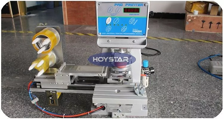 Ako profesionálny výrobca v Číne by sme vám radi poskytli vysokoúčinnú stolovú 1 farebnú tampónovú tlačiareň HOYSTAR so systémom automatického čistenia. Tento tampónový tlačový stroj vybavený uzavretým zásobníkom atramentu a automatickým čistiacim systémom je ideálne vhodný na tlač na širokú škálu materiálov a produktov. Jeho aplikácie zahŕňajú plasty, hardvér, elektroniku, hračky, kozmetické obaly, elektrické predmety, darčeky a prémie, uzávery fliaš, písacie potreby, keramické predmety a reklamné reklamy. Integrovaný automatický čistiaci systém výrazne zvyšuje efektivitu tým, že šetrí čas a zjednodušuje obsluhu.