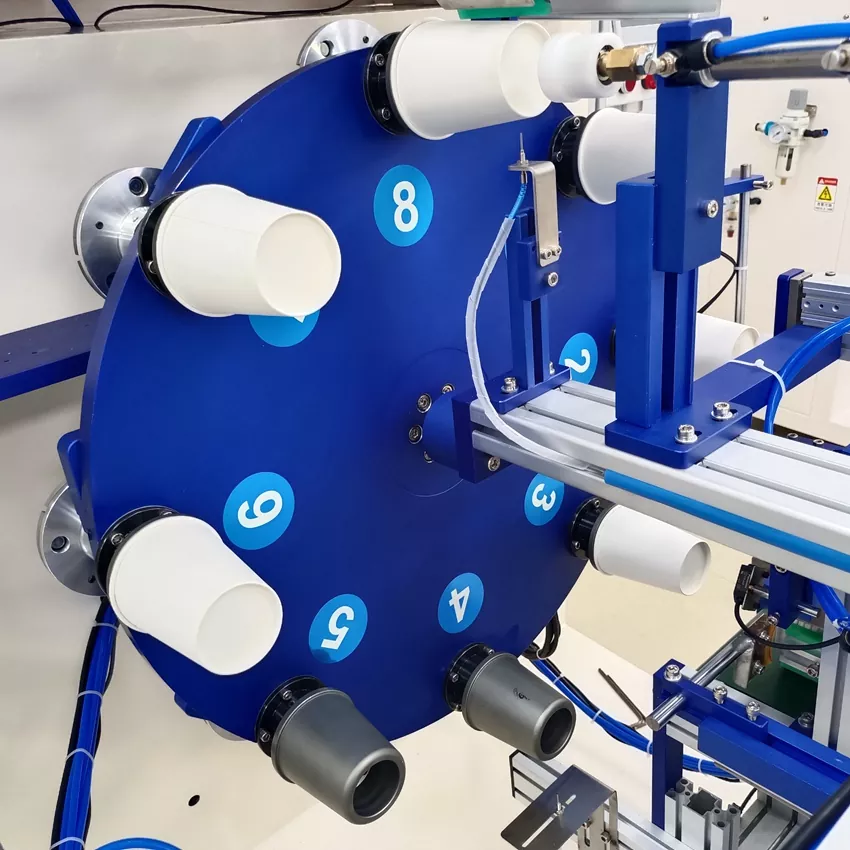 9. Polohovanie viacerých staníc dosiahnuté pomocou vysoko presného rotačného indexovacieho systému (vyrobené na Taiwane), ktorý zaisťuje stabilitu, rýchlosť a vyššiu efektivitu.