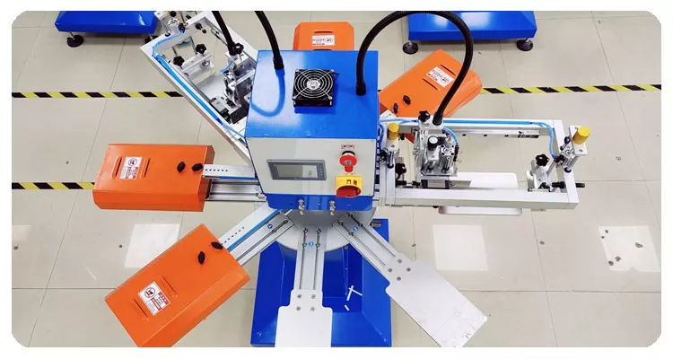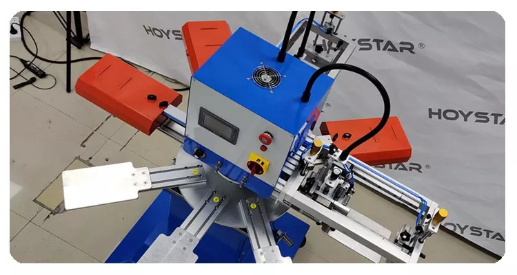 Rotačný 2-farebný sieťotlačový stroj štítkov na odevy s PLC a dotykovým panelom, ovládanie je intuitívne – dokonca aj pre nových používateľov. Rozhranie umožňuje jednoduché nastavenie rýchlosti tlače, režimu tlače atď.