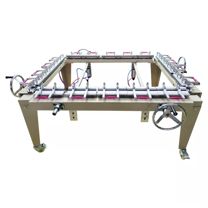 Stroj na naťahovanie rámu sita sa používa na rovnomerné a pevné natiahnutie sita na hliníkový alebo drevený rám, čím sa zaisťuje konzistentné napnutie sita - to je kľúčový faktor na dosiahnutie rovnomernej atramentovej tlače počas procesu tlače.