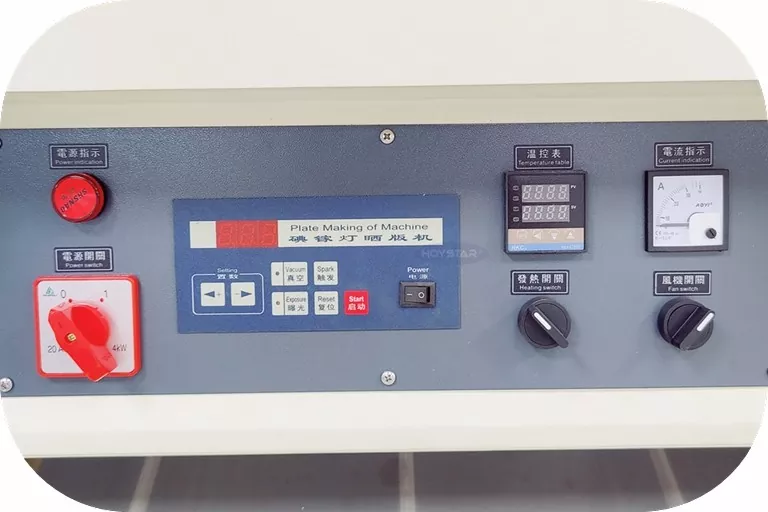 Vákuový stroj na vystavenie UV žiareniu so sušením na sieťotlač vybavený ovládacím panelom, čas expozície a čas sušenia stroja možno voľne nastaviť podľa potrieb